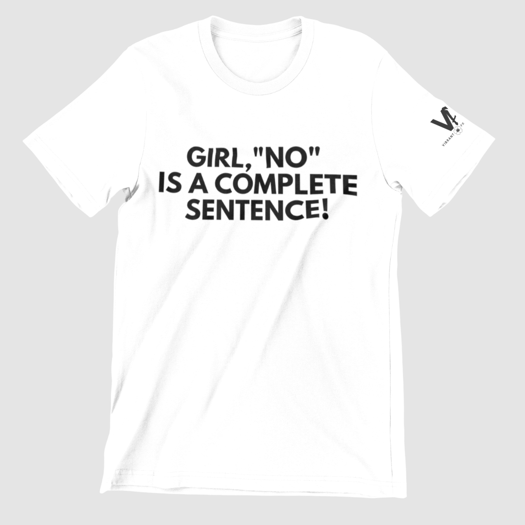 Introducing our fearless statement tee: "Girl, no is a complete sentence." This isn't just a shirt; it's a bold declaration for grown women who radiate confidence and live life authentically. Crafted for the fiercely authentic, this tee embodies sass, style, and a refusal to settle. Step out, dress fly, and let your "no" speak volumes. Because when you're over 40 and fabulous, your wardrobe should be as unapologetic as you are. There's absolutely nothing wrong with saying "NO" without explaining yourself.