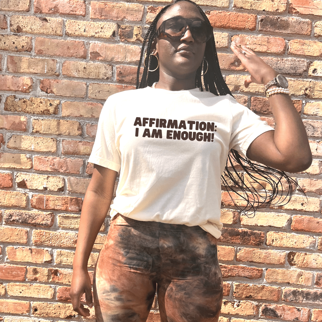 Our I am enough t-shirt is a reminder to yourself and others that you're strong, bold, and beautiful, without need for perfection. Wear it with pride and celebrate the journey to becoming your best self.